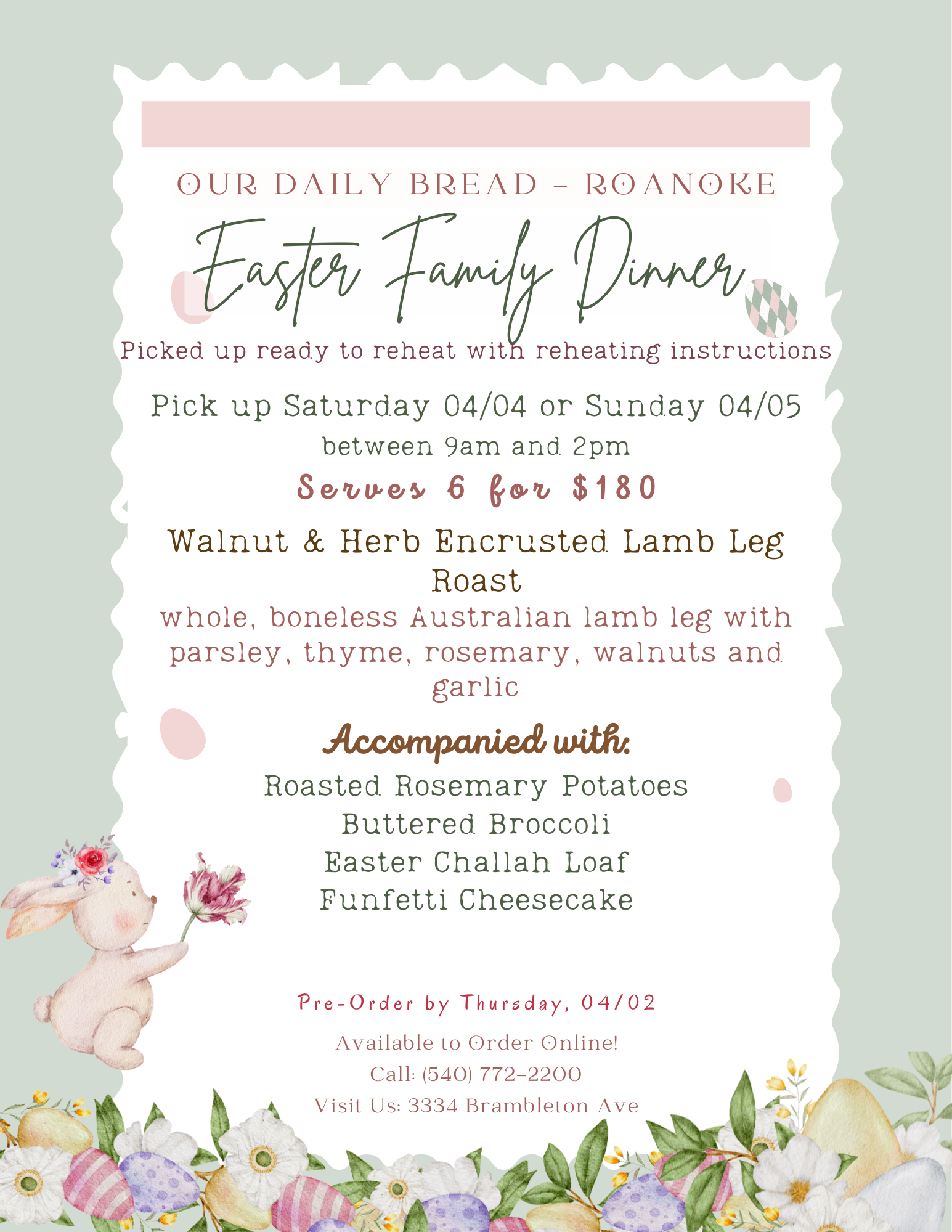 Order Online (Please allow 30 minutes for us to prepare your family dinner)
